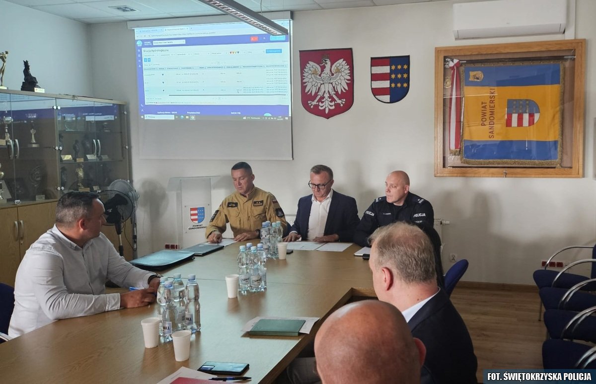 Wczoraj w Starostwie Powiatowym w Sandomierzu odbyło się posiedzenie Powiatowego Zespołu Zarządzania Kryzysowego, podczas którego omówiono obecną sytuację hydrologiczną na terenie powiatu jak również przygotowanie służb i instytucji do mogących wystąpić sytuacji kryzysowych w związku z intensywnymi opadami deszczu.