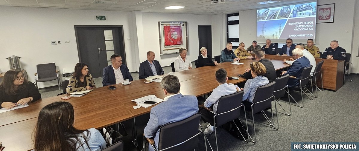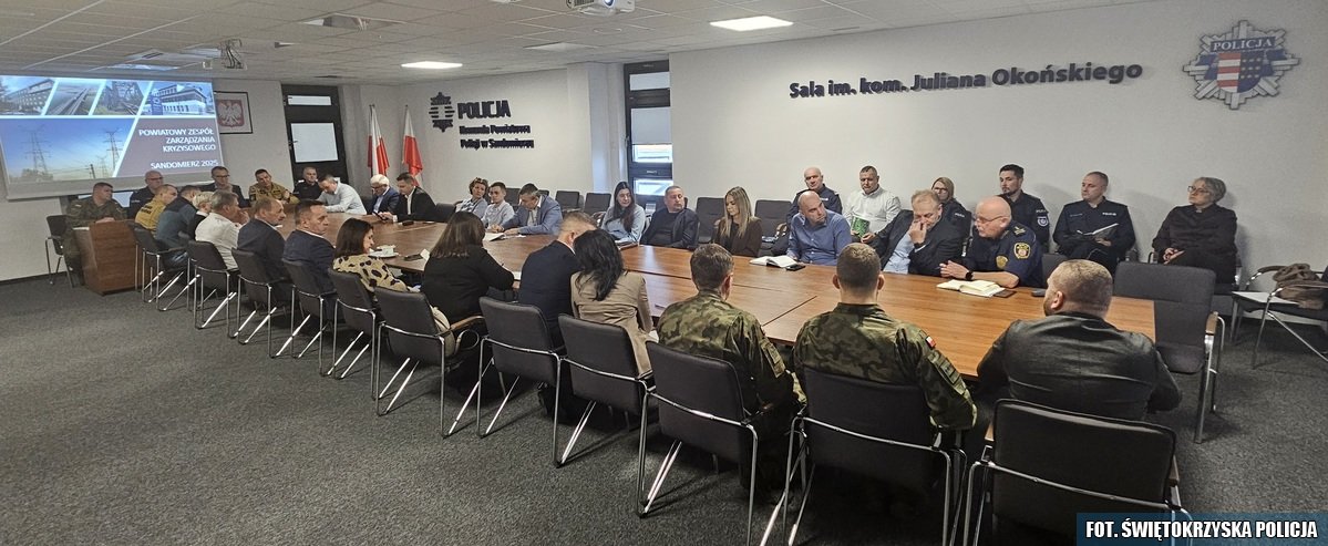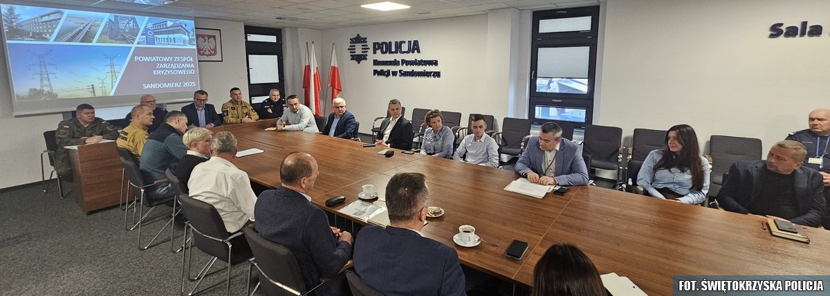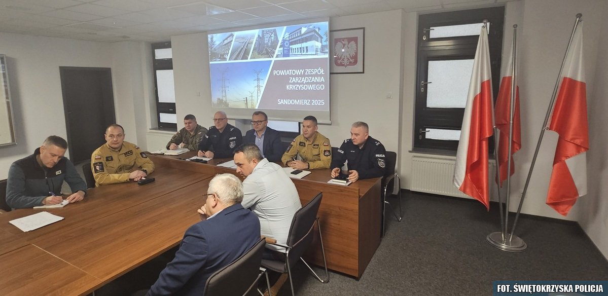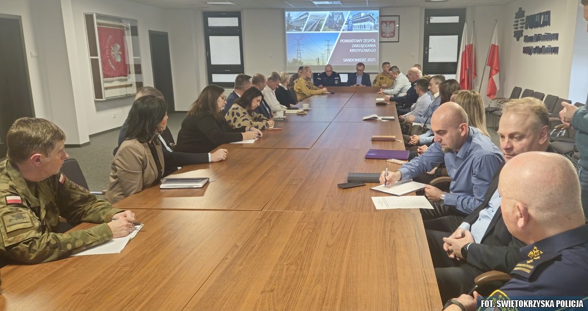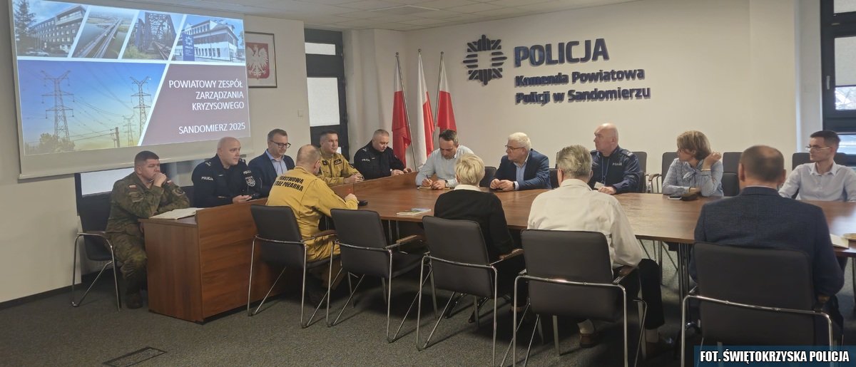 Wczoraj w Komendzie Powiatowej Policji w Sandomierzu odbyło się posiedzenie Powiatowego Zespołu Zarządzania Kryzysowego, podczas którego omówiono obecną sytuację dotyczącą ryzyka wystąpienia aktów sabotażu i dywersji w rejonach infrastruktury kolejowej na terenie powiatu sandomierskiego, jak również przygotowanie służb i instytucji do przedsięwzięć ukierunkowanych na ujawnianie i przeciwdziałanie zagrożeń terrorystycznych.