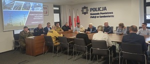 Obecny na posiedzeniu Komendant Powiatowy Policji w Sandomierzu podinsp. Grzegorz Jaworski podkreślał, że policjanci pozostają w pełnej gotowości operacyjnej i zapewniał o jak najlepszej współpracy z innymi służbami. Dodał, że policja na bieżąco monitoruje sytuację dotyczącą zagrożeń o charakterze terrorystycznym, na terenach infrastruktury kolejowej na terenie powiatu sandomierskiego. Zapewnił o wzmożonych patrolach Policji w rejonach narażonych na akty dywersji, polegających na realizacji zadań obserwacyjnych, patrolowych, dozorowych, a także gotowości do podjęcia natychmiastowej reakcji w przypadku zagrożenia bezpieczeństwa i porządku publicznego, przy wykorzystaniu statków powietrznych.