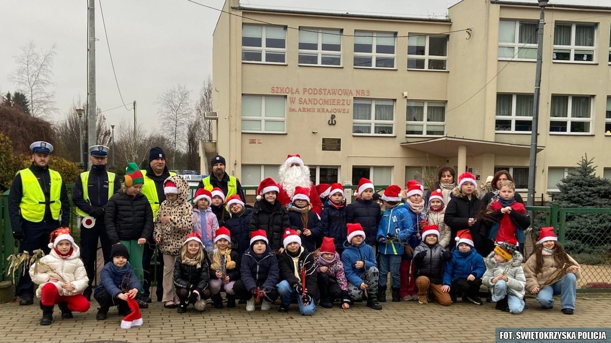 Dzisiaj odbyła się coroczna mikołajkowa akcja funkcjonariuszy z Komendy Powiatowej Policji w Sandomierzu wraz z uczniami Szkoły Podstawowej nr 3. Celem wydarzenia było zwiększenie bezpieczeństwa na drogach w okolicach szkół i drogach powiatu sandomierskiego oraz promowanie właściwych nawyków wśród kierujących i pieszych.