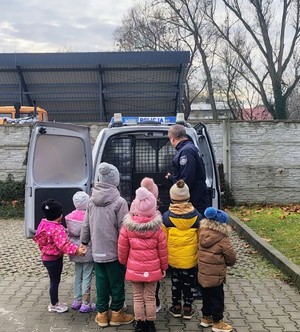 Przedszkolaki w trakcie wizyty miały okazję zobaczyć codzienną pracę policjantów, poznać urządzenia i sprzęt przydatny podczas służby policjantów pionu prewencji. Niezwykłą radość sprawiło dzieciom oglądanie służbowych pojazdów, jak również możliwość wejścia do radiowozu i poczuć się jak prawdziwy policjant. Wśród chłopców największa popularnością cieszyły się policyjne tarcze i kajdanki.