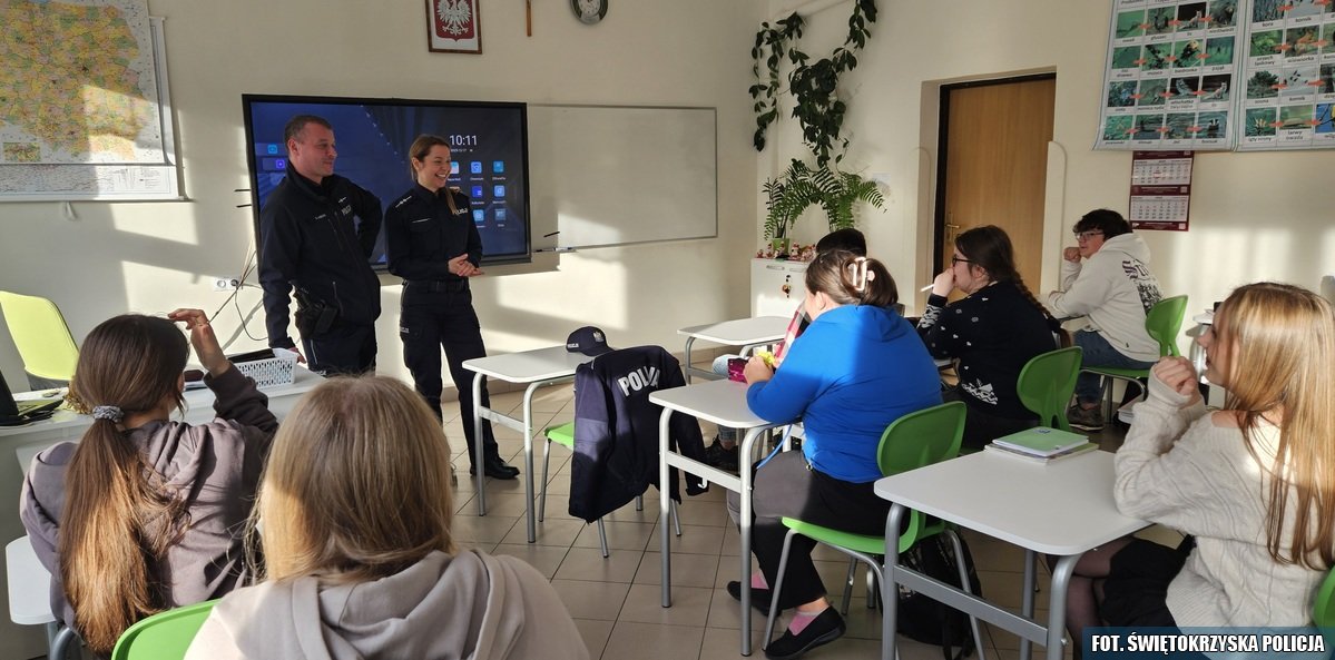 Funkcjonariusze regularnie angażują się w realizację spotkań o charakterze profilaktycznym z dziećmi i młodzieżą szkolną z terenu powiatu sandomierskiego. Dzisiaj z uczniami Szkoły Podstawowej w Zawichoście policjanci rozmawiali o odpowiedzialności karnej nieletnich, hejcie, zagrożeniach w sieci, przemocy rówieśniczej jak również bezpieczeństwie w ruchu drogowym.