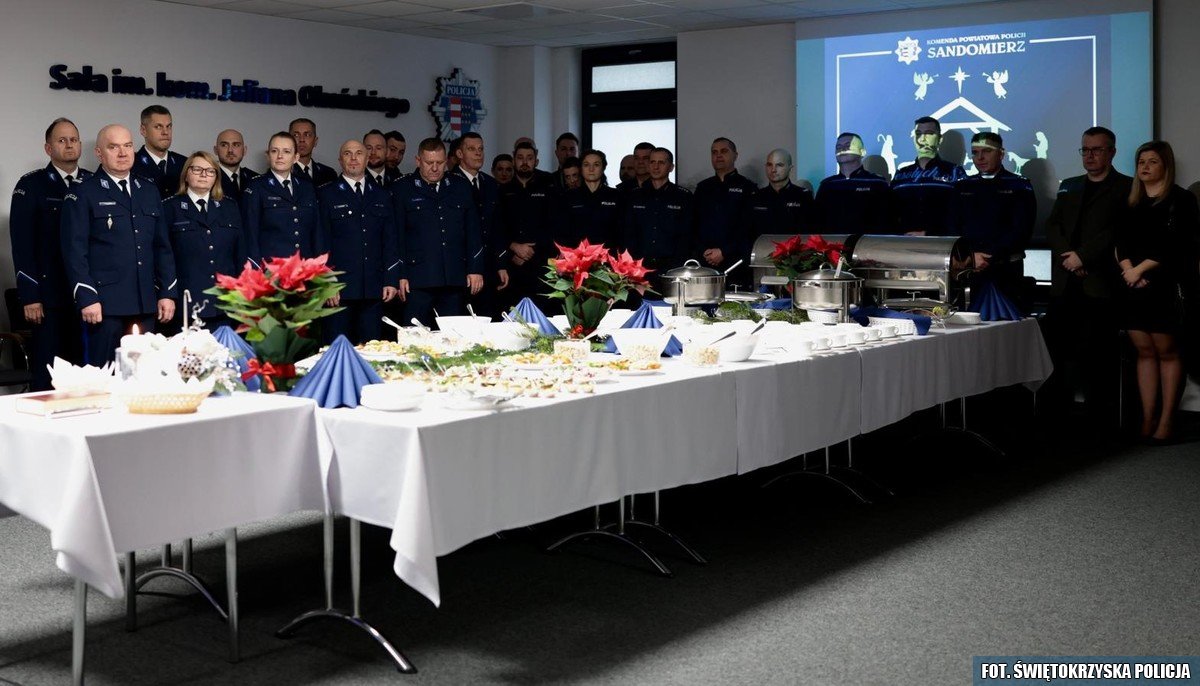 Wigilijne spotkanie opłatkowe, które odbyło się w sali im. kom. Juliana Okońskiego Komendy Powiatowej Policji w Sandomierzu zgromadziło liczne grono przybyłych gości. W spotkaniu oprócz policjantek, policjantów i pracowników cywilnych, udział wzięli Jego Ekscelencja Ksiądz Biskup Sandomierski Krzysztof Nitkiewicz wraz z duchownymi, przedstawiciele zaprzyjaźnionych służb mundurowych oraz instytucji, z którymi na co dzień współpracujemy i na których pomoc i wsparcie zawsze możemy liczyć.