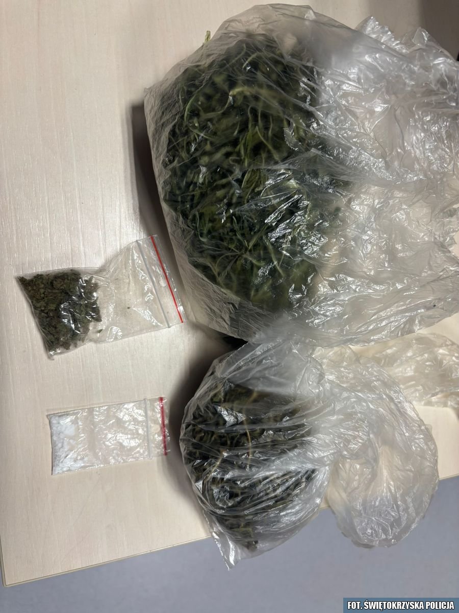 Sprzeczkę pomiędzy domownikami zgłoszono po godzinie 19. Po przybyciu na miejsce i podjęciu interwencji, funkcjonariusze zauważyli w mieszkaniu dwa woreczki foliowe i torebkę z zapięciem strunowym. Pakunki zawierały susz roślinny koloru brunatno-zielonego o łącznej wadze 72 gramów. Wstępnie zidentyfikowany został jako marihuana. Policjanci zabezpieczyli także torebkę z zapięciem strunowym z substancją proszkową koloru białego w ilości około 1 grama, wstępnie zidentyfikowaną jako amfetamina.