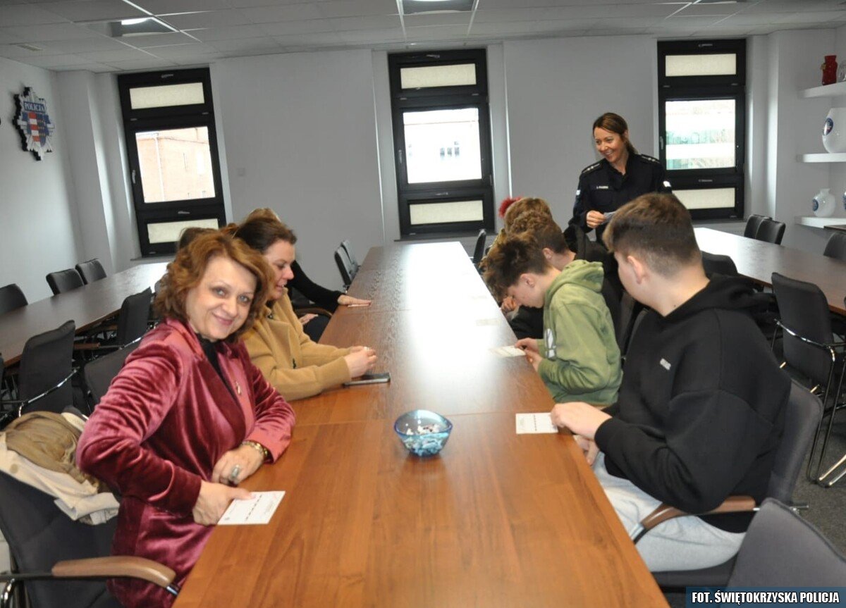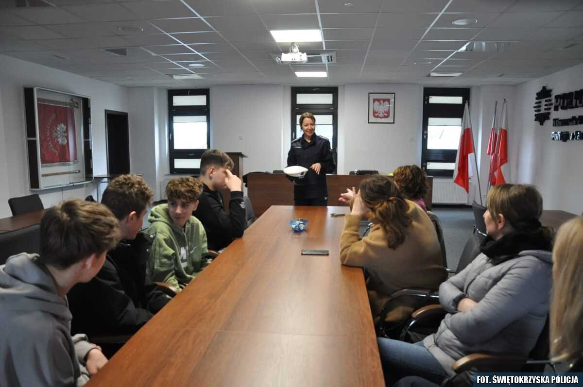 Młodzież kontra zagrożenia - edukacyjna wizyta w komendzie